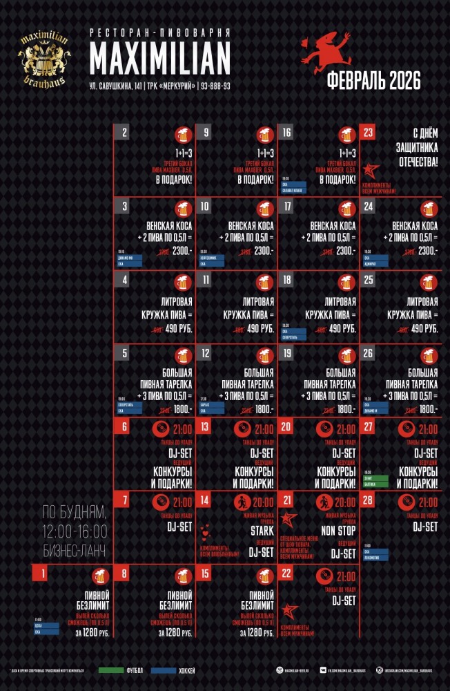 ГлавнаяАфишаСобытия в феврале в MAXIMILIAN 28 февраля Maximilian САВУШКИНА События в феврале в MAXIMILIAN